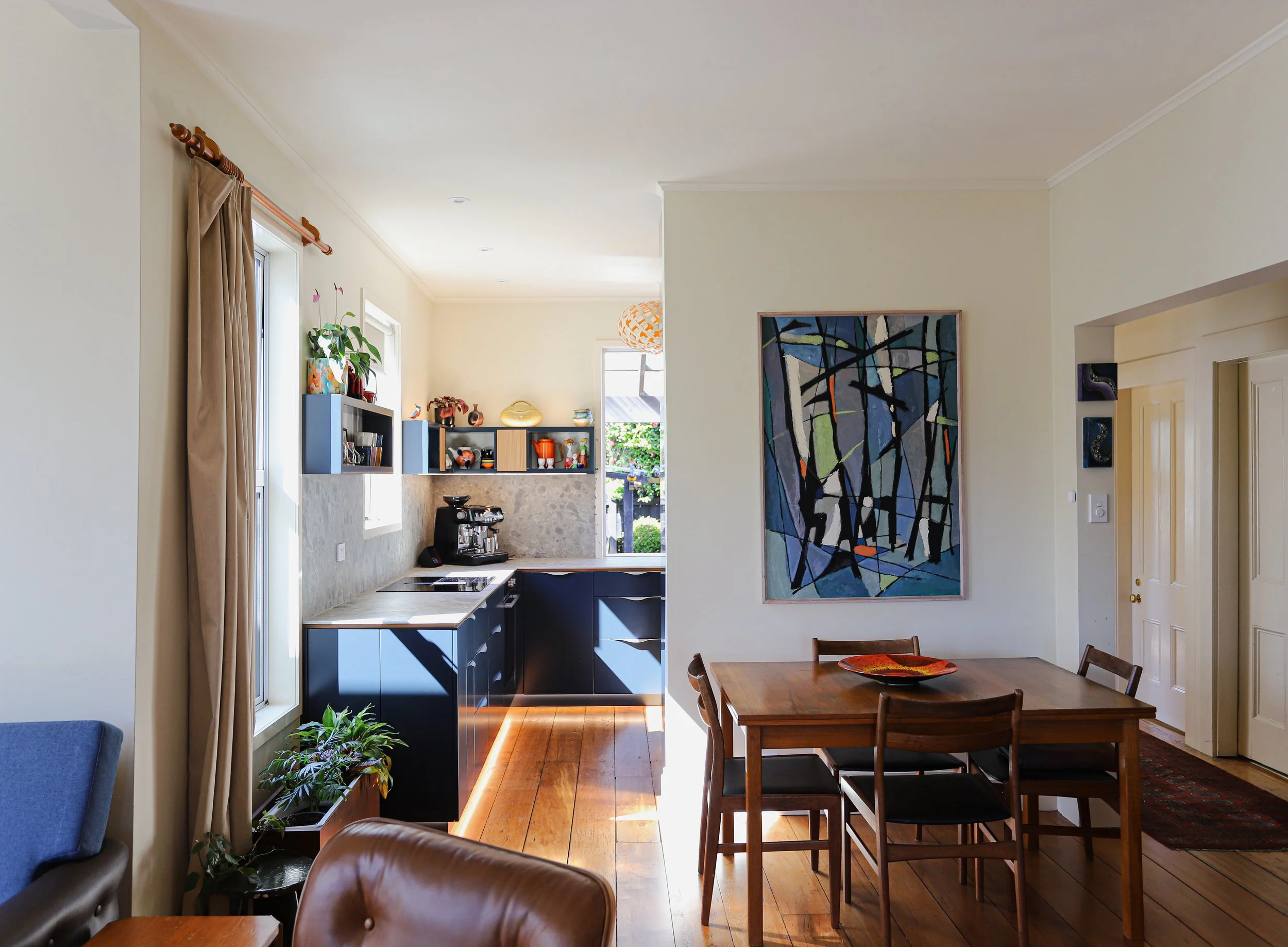 This custom kitchen brings together refined materials, clever hardware, and a striking palette to create a space that feels modern, functional, and full of character. Built with premium Blum Merivobox drawer systems for smooth, long-lasting performance, the kitchen is finished in Resene Dark Knight - a deep, moody tone that adds instant sophistication.
