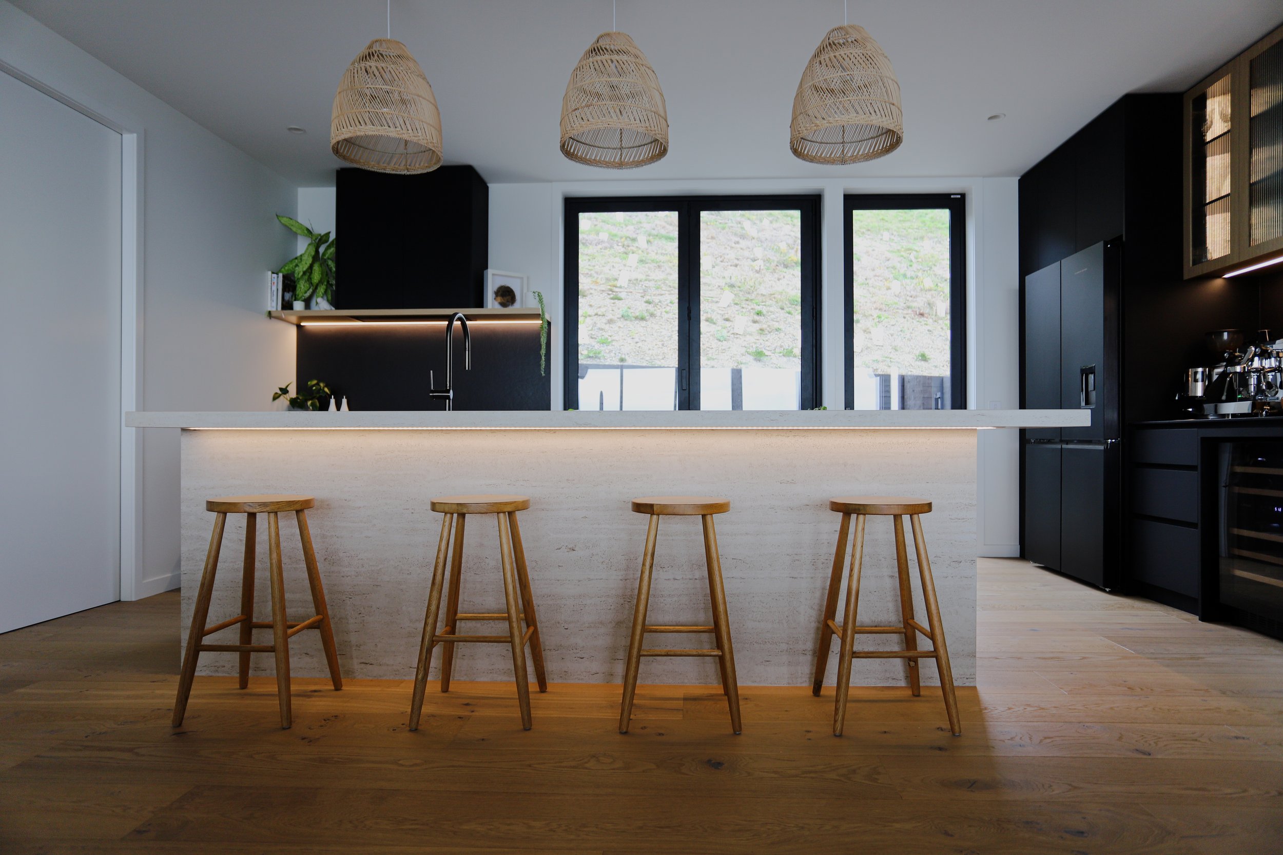 The result is a kitchen that feels layered, considered, and timeless, where texture adds interest, contrast adds character, and every detail has been thoughtfully curated.